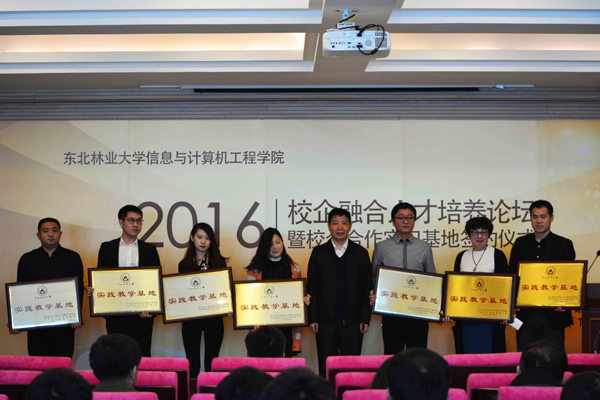 授牌仪式上,信息与计算机工程学院分别向东软集团股份有限公司、中软国际有限公司、用友网络科技股份有限公司等22家企业授予了“东北林业大学实践教学基地” 牌匾。