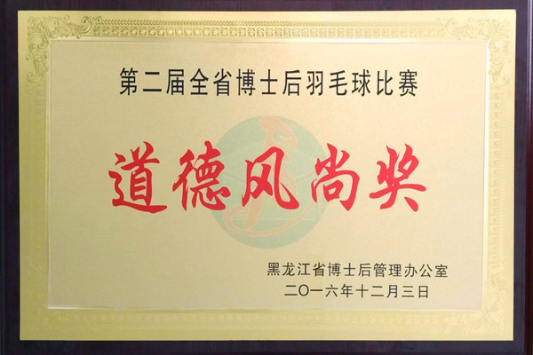 在比赛中我校选手遵守规则、尊重对手、顽强拼搏、不骄不躁,克服场次密集,高手众多等不利因素,努力打好每一个球,充分展现了我校博士后研究人员的良好素养,受到主办单位领导、裁判员及工作人员的好评,并获得了“道德风尚奖”。