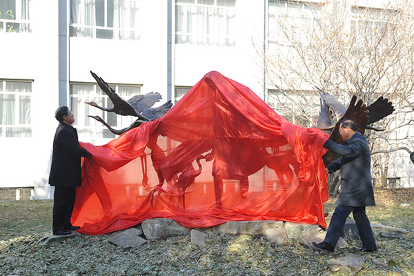 吴国春书记在致辞中表示,徐秀娟17岁投身于鹤类保护事业,1985年自费到我校野生动物系进修,将两年的学业压缩在一年半内完成。1987年在江苏盐城自然保护区,她为寻找走失的天鹅而溺水,年轻的生命永远定格在如花的23岁。吴书记表示,我们树立徐秀娟塑像的目的,就是要学习她敦品励学、求知若渴的精神,学习弘扬她乐苦敬业、无私奉献的情怀,希望广大师生继续弘扬“鹤魂”精神,为推动我校“双一流”建设、为我国的生态文明建设多做贡献,再立新功。