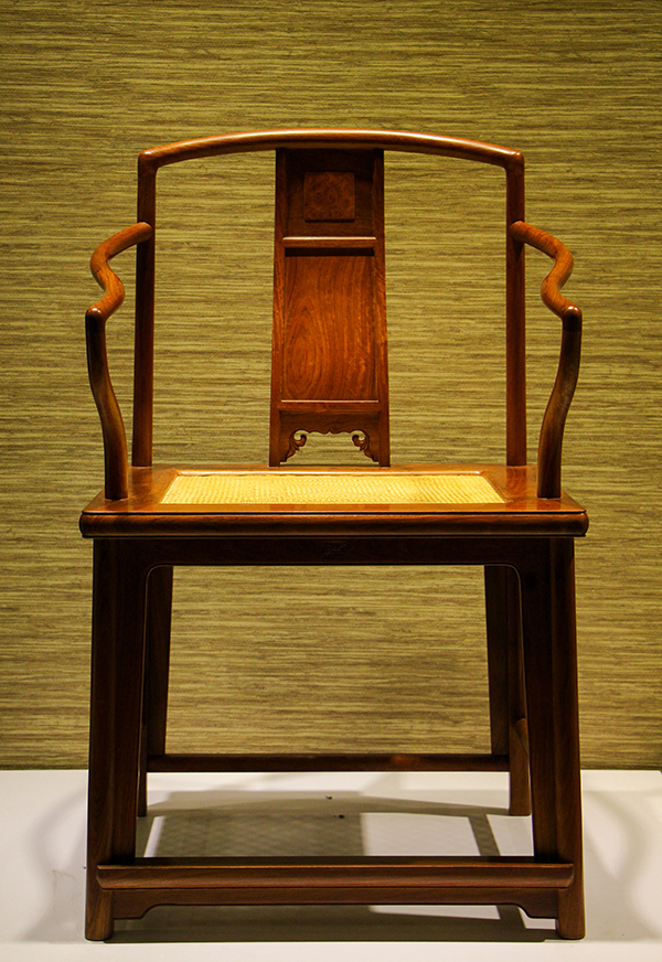 踏进展厅,参观者会立刻被丝丝木香所吸引,那是我校教师牛晓霆设计的明式家具,这淡淡的香气正是黄花梨木的特有气味,在灯光下,这些家具闪着温润华光,线条流畅却又硬朗,器形阳刚却又内敛,柔和当中又透出蓬勃的生命力,它们有种安静的力量,让观者在浮躁中沉静下来,感受扑面而来的历史厚重感,几百年的文明积淀,就在那阴阳相错起承转合的线条里了。