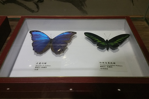 此外,现场展出的二百多种珍贵蝴蝶标本大部分来自海外,其中有很多在我国境内是无法看到的,尤其是一些闪蝶科的蝴蝶,翅膀往往闪耀着亦真亦幻的金属般蓝色光泽,如同彩虹炫目,美不可言。