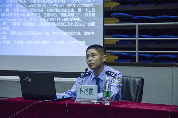 黑龙江省公安厅网络安全保卫总队卜晓儒警官为新生作报告