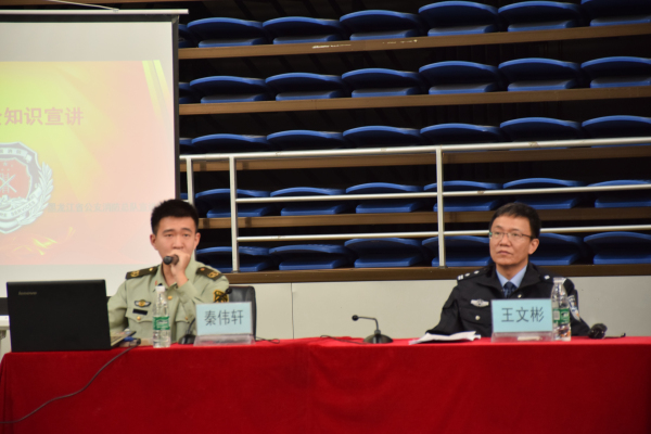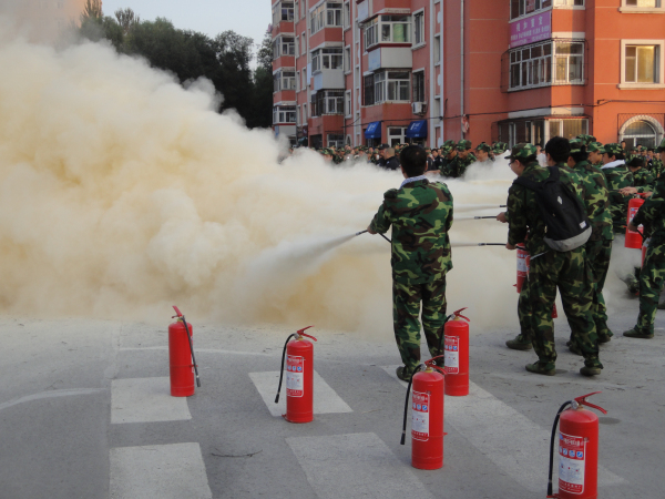 为提高2016级新生的消防安全意识,帮助他们了解和掌握消防常识,9月21日下午,学校邀请香坊区消防大队警官秦伟轩为2016级新生进行消防知识安全讲座。讲座之后,学校组织进行了火警疏散演练,并篮球场进行了灭火器使用演习。