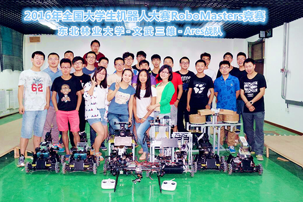 我校机器人代表队2015年9月开始组建,依托机电工程学院大学生科技创新中心,共有25名队员,其中机电工程学院22人、工程技术学院2人、材料科学与工程学院1人,通过近八个月的努力完成了“基地”机器人、“英雄”机器人、“步兵”机器人、空中机器人、补给站等五类八台机器人的制作与调试工作。