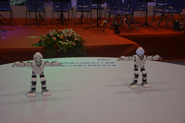 TRCC第五届中国机器人创意设计大赛暨第二届国际仿人机器人奥林匹克大赛于7月7日在青岛举行。来自中国、日本、韩国、俄罗斯、美国、加拿大等国家和地区的110支队伍参加本届大赛,角逐创意设计、舞蹈、球类、水上竞技、无人机等6个大类共30个项目的桂冠。我校信息学院派出4个参赛队共22名队员进行了十个项目的角逐。