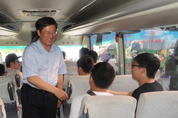 毕业生送站当日,党委书记吴国春和校长杨传平亲自为毕业生送行的场景让所有东林学子深受感动、备受鼓舞、久久不能忘怀。离校前夕,学校领导蔺海波副书记多次深入各有关单位,详细了解毕业生离校工作的准备情况;代表学校欢送西藏定向生、西部计划志愿者、参军入伍毕业生,鼓励他们到西部体验、入军营历练、在基层建功;与毕业生党员一起参加主题党日活动。