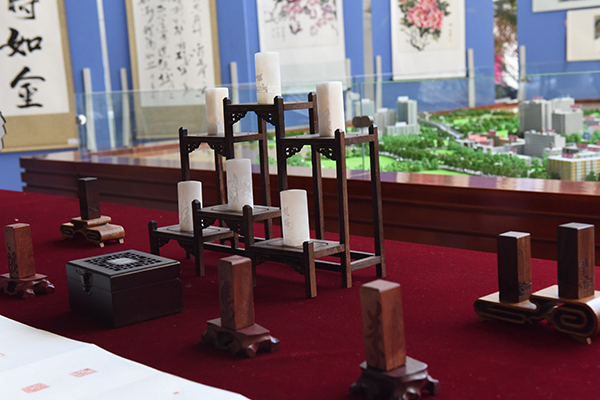 此次主题书画展共展出作品40余幅,均由我校师生创作。参展作品形式多样、内容丰富,书法作品篆、隶、楷、行、草种类齐全,条幅、横幅、扇面等形式俱备,绘画作品或写实或会意,或醉墨淋漓或写意挥洒,更兼有“道印轩”具有浓厚传统文化底蕴的篆刻艺术作品,以及我校教师完整抄录的《党章》百米长卷,具有很强的思想性和观赏性,充分展现了我校师生的才情智慧和艺术品格。