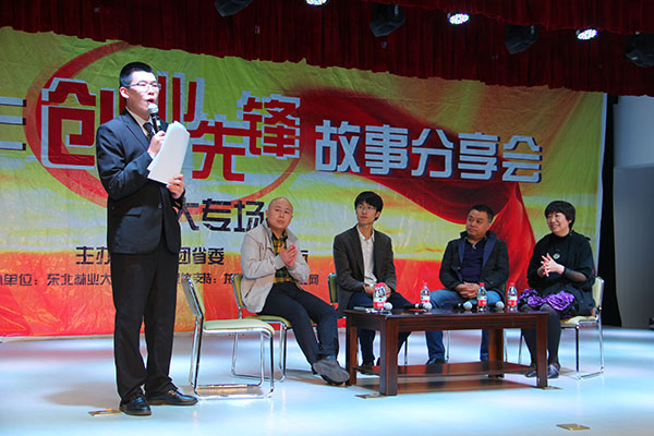 5月13日晚,全省第三场“百场青年创业先锋故事分享会”走进我校,哈尔滨越泰科技发展有限公司总经理全一明、哈尔滨网腾科技开发有限公司负责人关志伟、哈尔滨巨米科技发展有限公司董事长计艳和哈尔滨私人飞机航空俱乐部总经理李丕宁等四位青年创业典型与同学们分享了他们的创业历程。