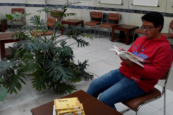 清晨的图书馆门前,总能看到学生排队等候的身影,宪昌便是其中最为常见的一个。大学四年,他在图书馆的时间比在教室、寝室的时间还长,平均每天在馆4小时以上。“天天都能看到他,我们还没开门,他就等在门口了”二楼的图书管理员对他印象深刻。“他几乎每天都去图书馆,有时看他在寝室,反而会觉得很奇怪。”孟宪昌的室友、经济管理学院2012级国贸专业的翟翰楠表示。“一到图书馆,就得待一天,几天不去的话就说不清哪儿难受。”宪昌憨憨地说。