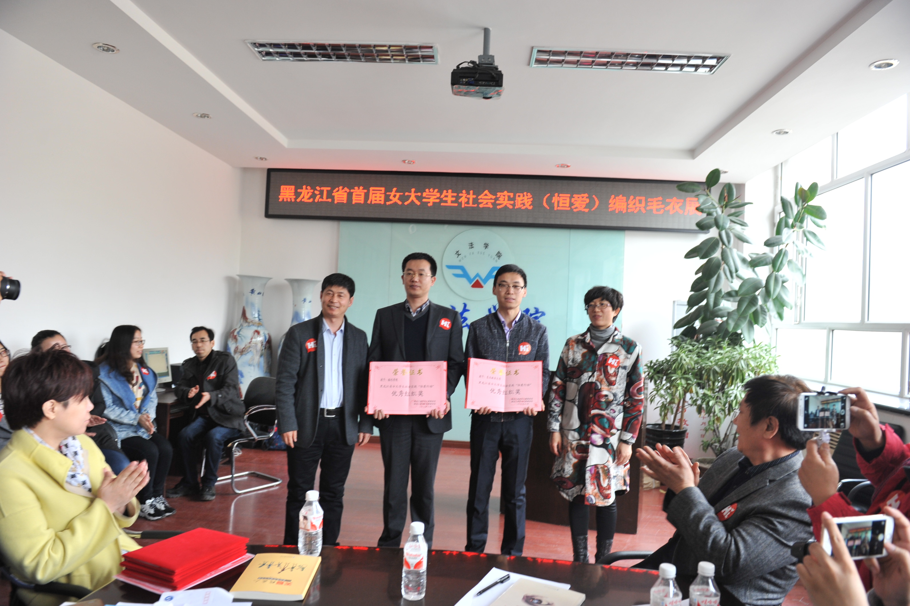 3月30日,黑龙江省女大学生社会实践(恒爱)编织毛衣展在我校文法学院举办,学校团委于2015年底组织了我校69名女大学生利用寒假时间编织了65件爱心毛衣,参加了此次展览。这些衣物将发放到农村贫困孩子手中。