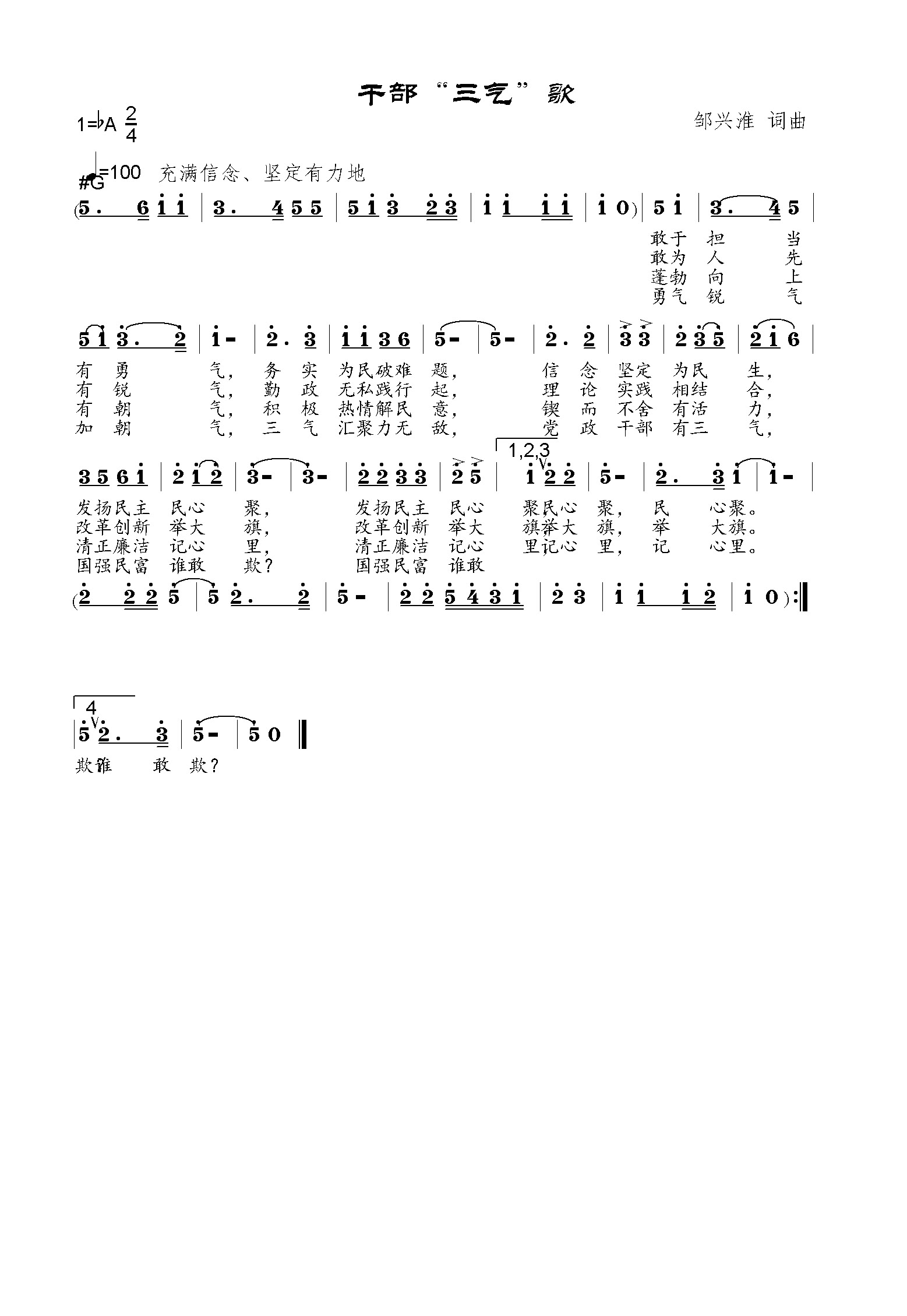 昨日,我校退休教授邹兴淮作词作曲创作了一首《干部“三气”歌》,传颂干部要有锐意创新的勇气、敢为人先的锐气、蓬勃向上的朝气。
