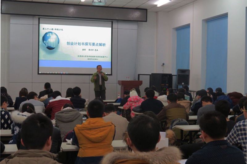 12月29日晚,创业就业指导专家秦光齐先生应邀做客第二十二期科技沙龙,在颐丰园活动中心报告厅就创业计划书的撰写问题向我校师生进行了细致讲解。