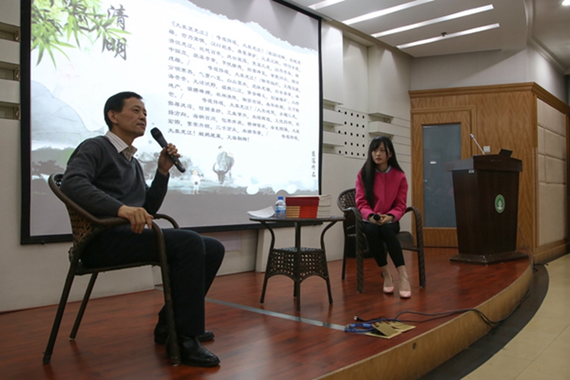 在新书推荐环节,刘老师为读者们推荐了他的两本著作《诗评中国历史名人》和《从群众中走来的英雄》,并表示能够传承中国优秀传统文化,将富含民族精神和时代精神的中国精神得以弘扬,是他著书立作的初衷,作为东林学子,同学们更应该牢记和弘扬“团结拼搏、自我激励、发挥优势、争创一流”的东林精神,与东林共命运、共成长。