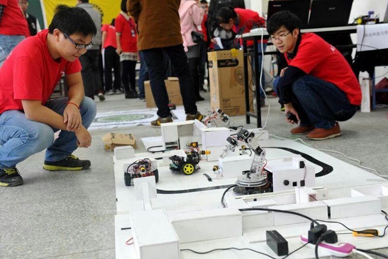 本次比赛由中国人工智能学会主办,东南大学承办,教育部机械类专业教学指导委员会协办,来自东南大学、南京大学、湖南大学、空军工程大学、西安科技大学等全国15个省市自治区的120多支代表队40多所院校500余人参加了此次盛会。我校机械电子、机械制造、电气工程及自动化三个专业的各年级13名学子在杨家武和孙雪老师的指导下,分别参加了教育机器人创意赛、灭火救援、高铁游中国、擂台对抗、智能搬运等项目的比赛。(孙雪)