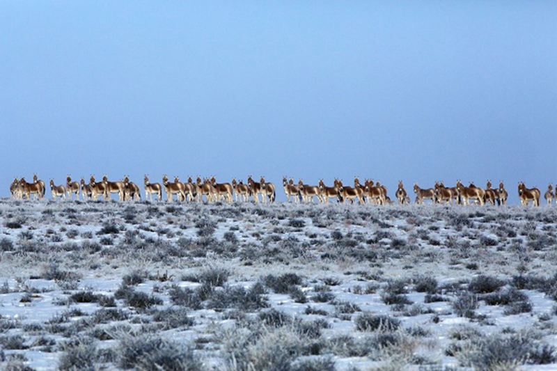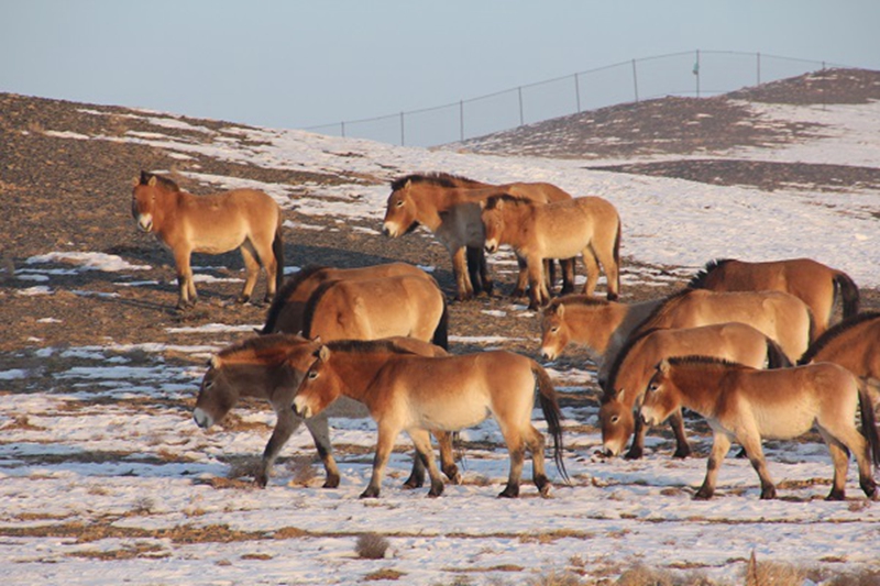 新疆卡拉麦里山有蹄类野生动物自然保护区位于准噶尔盆地东部,是典型的干旱、半干旱荒漠类型的保护区,以保护普氏野马、蒙古野驴和鹅喉羚等珍稀、濒危有蹄类动物及其生境为主。普氏野马于2001年在保护区内进行野外放归试验,目前已经基本适应了野外环境,种群稳定发展。