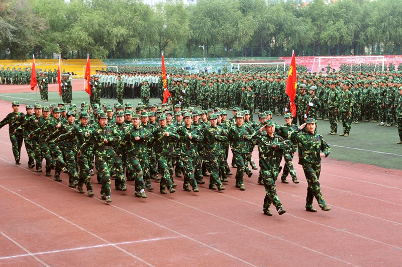 伴随着激昂的《中国人民解放军进行曲》,身着军装、精神抖擞的68支受训方队,在军旗和各营旗的引导下,依次正步通过主席台,他们以矫健的步伐和昂扬的精神风貌接受了检阅。各方队阵容严整威武,口号铿锵响亮,充分展现出军人特有气质和当代大学生良好的精神面貌。