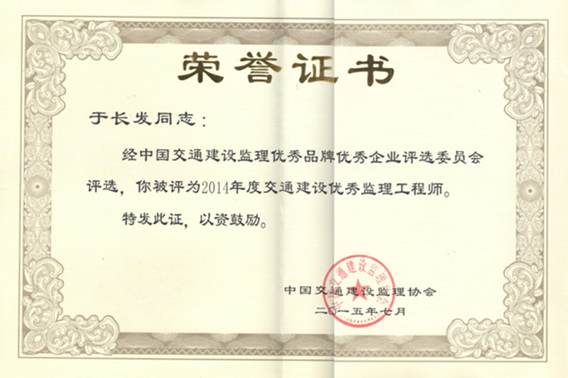 日前,我校工程咨询设计研究院有限公司被中国交通建设监理协会评为“交通建设优秀监理企业”,于长发同志获评“交通建设优秀监理工程师”。