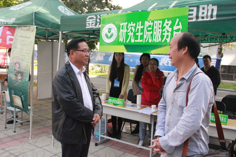 校长杨传平与研究生新生家长攀谈