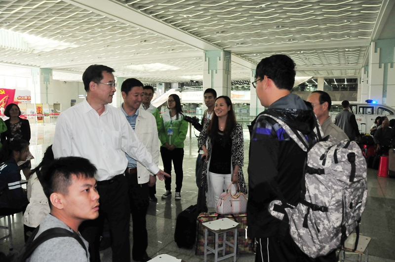 为了做好新生到哈接站工作,让新生一出站台就能感受到东北林业大学的热情和家一般的温暖,学校今年在哈尔滨火车站和哈尔滨西客站设立了接站处。10日上午,党委副书记蔺海波带领党委学工部、校团委的同志到哈尔滨火车站和哈尔滨西客站,看望了在一线组织迎新的老师和参与迎新工作的学生志愿者,并与前来报到的学生家长和新生亲切交谈。蔺海波副书记现场察看了迎新的组织和落实情况,了解迎新客车的运行状态,并对火车站的迎新工作给予了现场指导。
