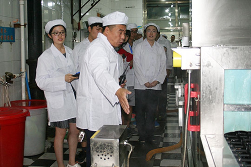 随后与会领导和学生食品安全监督员代表在饮食中心主任苗国民和党支部书记梁敏姝的带领下,分两组对饮食中心地下一层的库房,一楼大班组的后厨,二楼米饭生产线,三楼食品检验室、面包房和四楼豆浆加工间进行了参观。各位领导对饮食中心的食品安全工作和环境卫生表示满意,并对三楼食品检验室的工作给予了肯定。副校长李顺龙、党委副书记蔺海波一再强调要把好食品质量关,为广大师生的身心健康保驾护航。学生食品安全监督员们对饮食中心严格的进货管理、整洁的后厨和较先进的生产线有了全新的认识,他们表示今后将放心在食堂就餐,因为这里不仅有家的感觉,还有安全的保障,他们会积极努力地配合好饮食中心的工作,发挥食品安全监督员的作用。