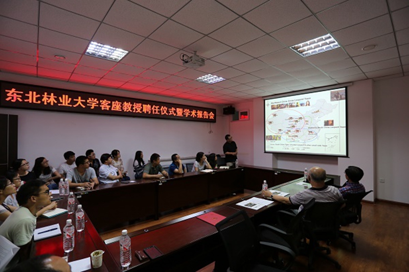 6月29日上午,我校客座教授时坤先生聘任仪式在国家林业局猫科动物研究中心会议室举行,国家林业局猫科动物研究中心主任马建章院士,副校长曹军,野生动物资源学院院长张伟,副院长郑冬、徐艳春,国家林业局猫科动物研究中心副主任张明海、常务副主任姜广顺等全体师生参加了聘任仪式。