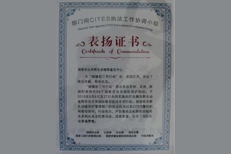6月18日,国家“部门间CITES执法工作协调小组”在北京召开“眼镜蛇三号行动”总结会,表彰了22个先进集体和55个先进个人。我校国家林业局野生动植物检测中心作为唯一高校单位,荣获“眼镜蛇三号行动”先进集体。