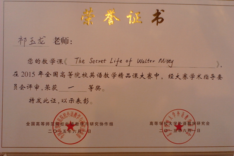 5月30日至6月2日,外国语学院英语系祁玉龙老师在成都参加了全国高等院校英语教学精品课大赛,获得英语专业组一等奖。