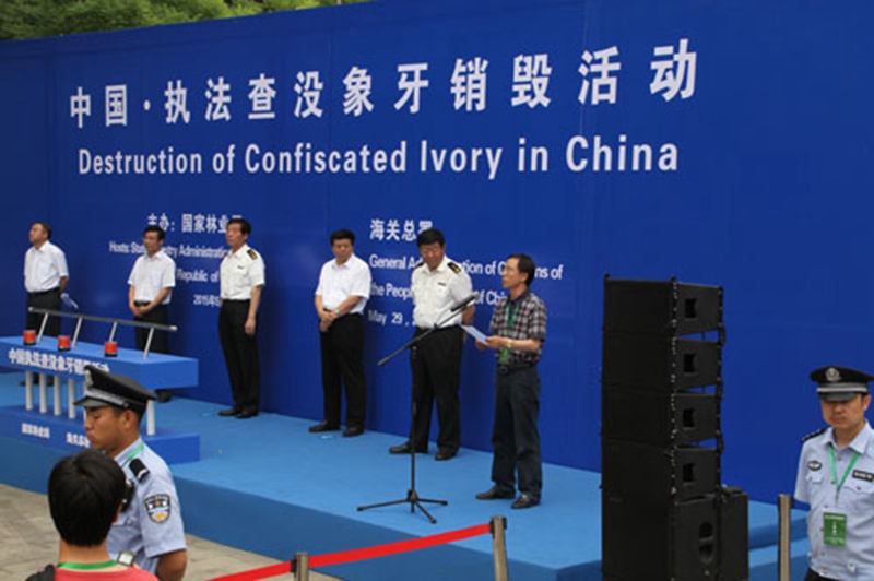 此次执法查没象牙销毁活动,受到广泛关注,国内外72家媒体百余位记者到场。活动由国家林业局副局长陈凤学主持,国家林业局局长赵树丛、海关总署署长于广洲分别致辞。