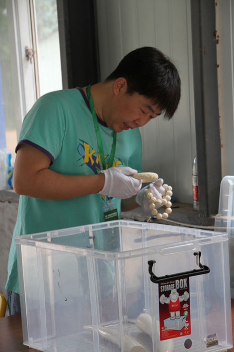张伟指导象牙摆放