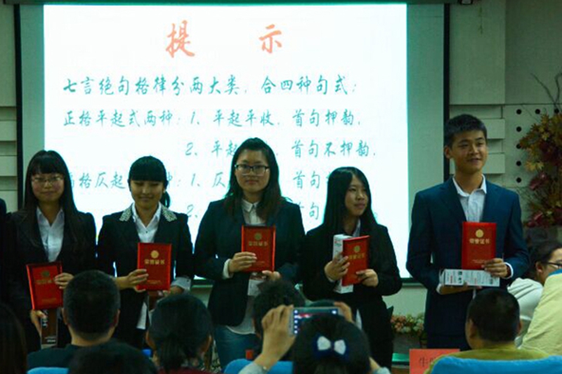 经过紧张的分数核算,最终,以“竹溪雅韵”命名的第三组夺得冠军,亚军和季军分别由“若比邻”组和“青山貌”组获得。“白羽惊风”组和“无衣”组10名同学获得优秀奖。