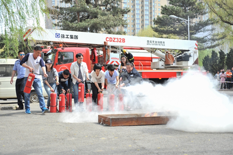 香坊消防大队动力中队警官现场讲解灭火器使用方法