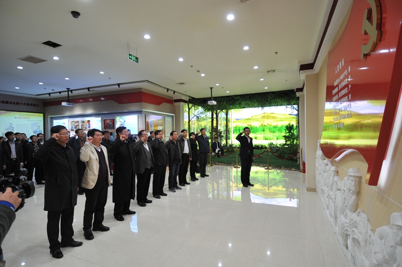 展厅结尾,同志们在党旗下举起右手,跟随解说员一起重温入党誓词,一句句铿锵有力的誓词折射出同志们对党的郑重承诺,从内心深处警示自己,要时刻保持清醒的头脑,提高自我约束能力和自我警示能力,常怀敬畏之心、常怀感恩之心、常怀律己之心,以脚踏实地的工作作风和敢为人先的工作态度践行党的群众路线。