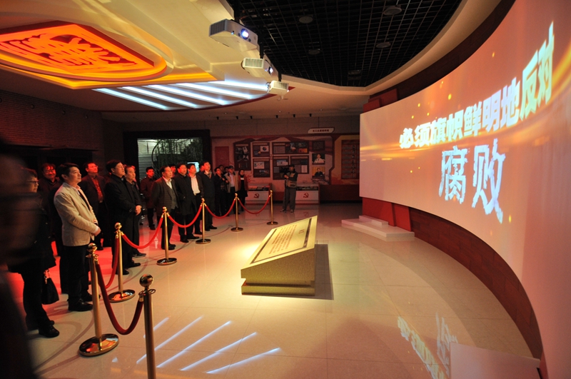 基地共分为3个展厅,由反贪之路、警示教育和示范教育3部分组成,采用实物、照片、场景等表现形式,综合运用声光电等现代信息手段,系统展示了我国反腐倡廉的发展历程和我省的反腐成果,既鞭挞腐败反面典型,又歌颂勤廉正面形象。