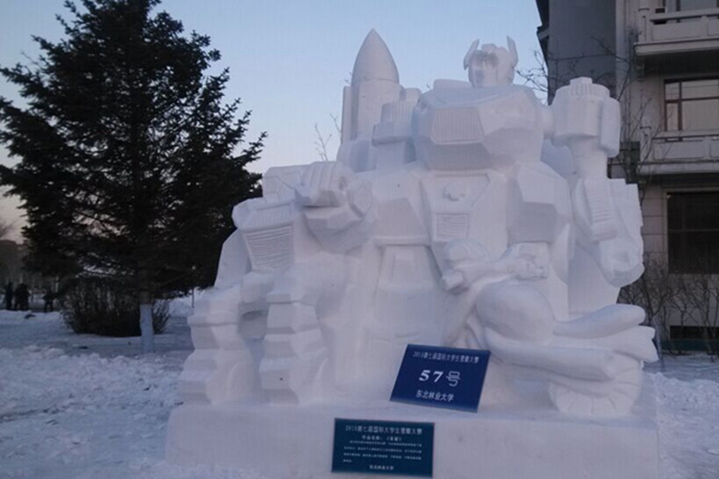 本届国际大学生雪雕大赛由来自美国、俄罗斯、德国、英国、韩国、乌克兰、泰国、日本、中国香港等11个国家和地区91所高校的144件作品报名参赛最终有69支参赛队晋级决赛。比赛采取网上投票、现场观众打分和专家打分3个环节组成。今年在比赛期间,室外温度达到零下三十多度,我校参赛的同学们为了更好的完成作品不畏严寒,连续几天加班奋战,最终成功完成我校雪雕参赛作品《革新》,作品以擎天柱机器人等为主要构成元素。通过参加比赛可以让同学们更好的进行造型艺术的表现,了解北方的“冰雪文化”,同时可以与11个国家和地区的大学生同台竞技,增加同学们的国际视野与交流,更好的锻炼我校学生坚强的意志力和奋勇拼搏的精神。 (周洪辉)