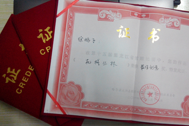 12月14日-12月18日第15届黑龙江省雪雕比赛在太阳岛雪博会举行,我校材料科学与工程学院选送的两组雪雕作品《机械丛林》和《春晓》分别获得最佳创意奖和优秀奖。
