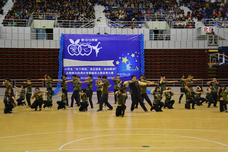 11月24日晚,我校大学生“走下网络、走出宿舍、走向操场”主题群众性课外体育锻炼活动之第十二届校园集体舞大赛决赛在新体育馆举行,共有来自各学院、学生社团组织的18个代表队500余名学生参加了比赛,近2000名学生到场观看了比赛。最终园林学院的《奔向阳光》和土木工程学院的《Breaking》获得一等奖。