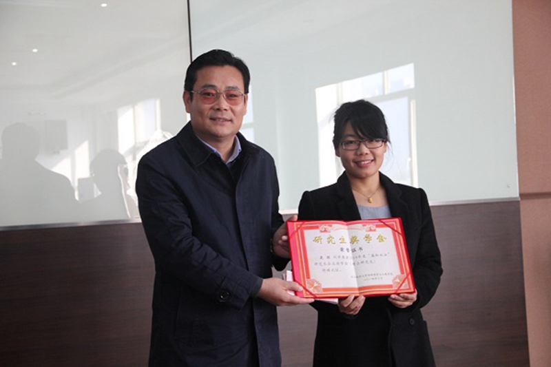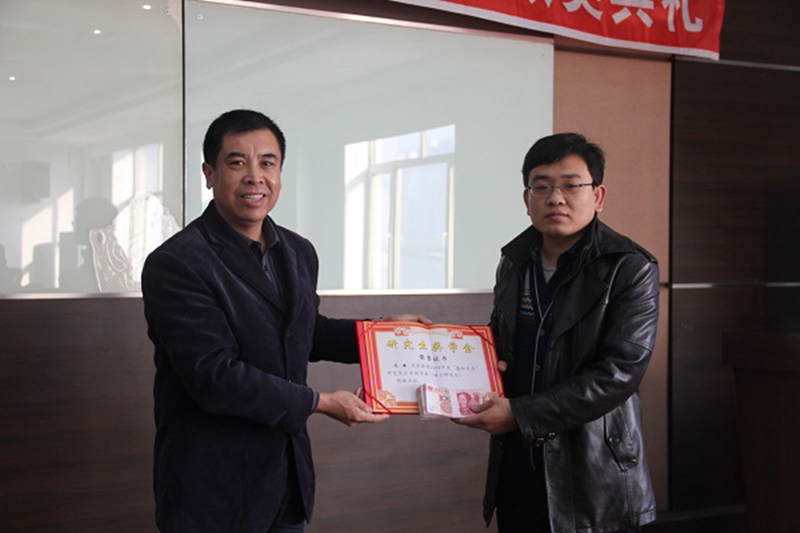 徐州盛和木业有限公司董事长王福华先生和副总经理魏鹏先生分别为获得2014级“盛和木业”励学金的同学现场颁发荣誉证书和现金奖励,博士研究生每人2万元、硕士研究生每人1万元。