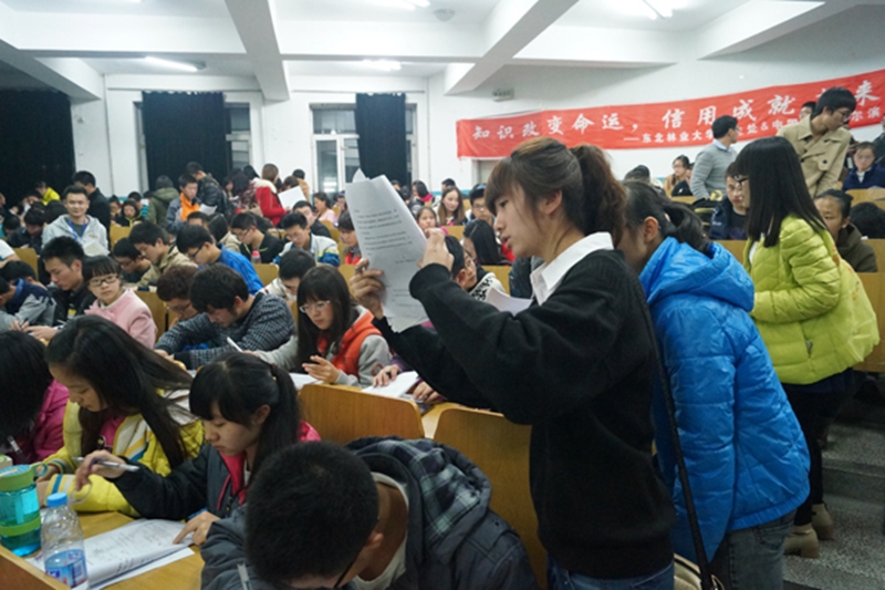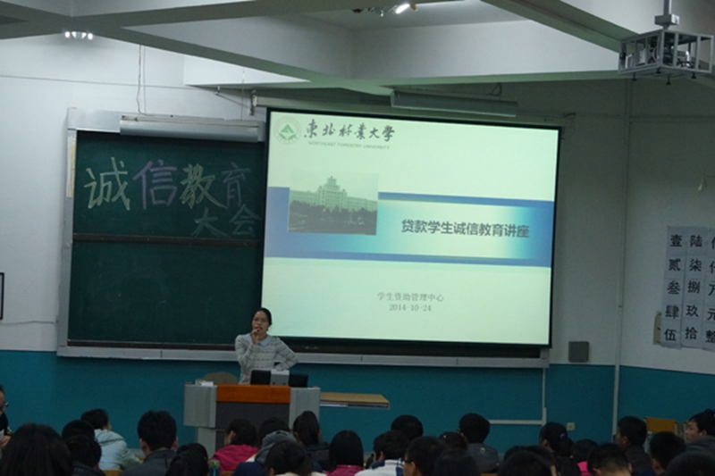 近日,东北林业大学2014-2015年度国家助学贷款诚信教育暨贷款申请审批表签订仪式在锦绣楼T401室如期举行,学生资助管理中心梁江老师及209名新办国家助学贷款学生参加了本次活动。