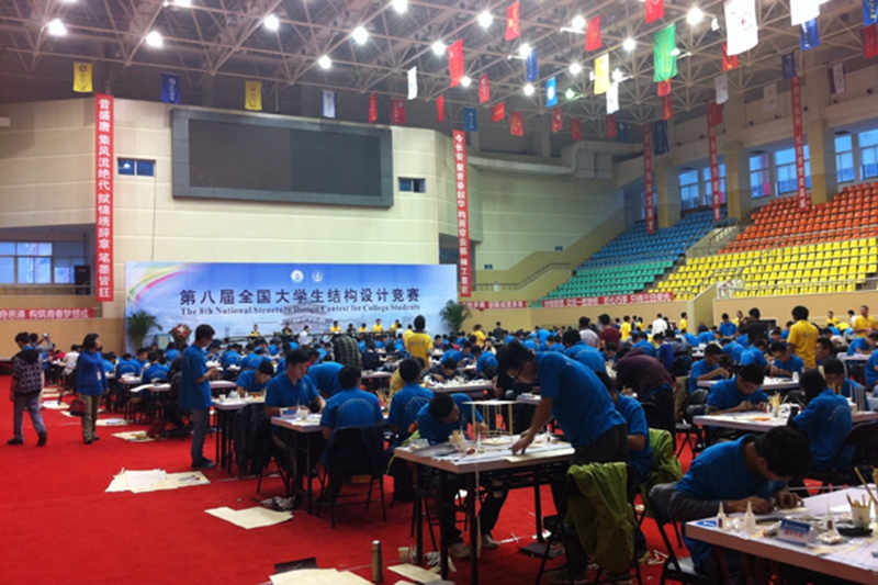 全国大学生结构设计竞赛是教育部确定的全国九大大学生学科竞赛之一,获得了教育部、财政部联合重点资助。近年来,全国大学生结构设计大赛影响力日渐扩大,是目前国内土木工程专业最具影响力的大学生科技创新活动赛事。本届竞赛的主题为“三重檐攒尖顶仿古楼阁模型制作与测试”。该结构采用竹皮作为基本制作材料,模型加载分数由模型质量、抗震级数两个因素决定,模型制作难度较往届也有所提升。
