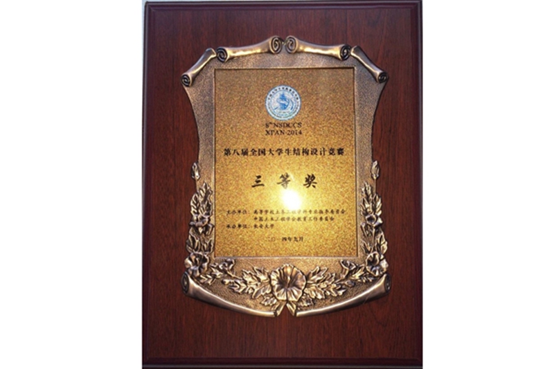2014年9月17日至9月20日,第八届全国大学生结构设计竞赛在长安大学隆重举行。此次竞赛吸引了国内清华大学、同济大学、浙江大学、西南交通大学等101所高校的102支队伍、500余名师生参赛。经过18小时的制作、四天紧张而激烈的比赛,在土木学院领队兼指导教师王立峰副教授指导带领下,王文章、刘鹏、魏达三位同学组成的代表队在竞赛中获得三等奖。