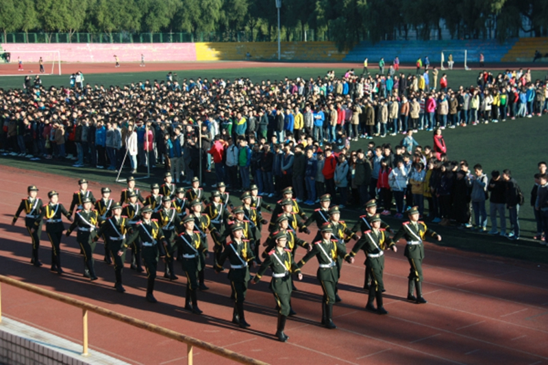清晨6时50分,升旗仪式正式开始。迎着朝阳,国旗仪仗队的队员们喊着嘹亮的口号,迈着铿锵的步伐护送国旗入场。随后,在激昂的国歌声中,升旗手振臂一挥,鲜艳的五星红旗在初升阳光的照耀下缓缓升起,在场师生向国旗行注目礼,对祖国的热爱和敬意瞬间弥漫整个操场。