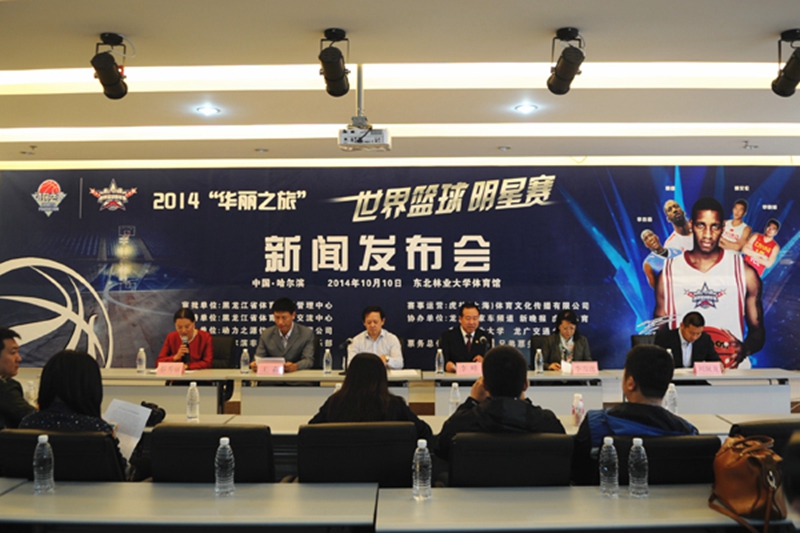 9月18日上午9时,2014“华丽之旅”世界篮球明星赛(哈尔滨站)新闻发布会在我校体育馆会议室召开。多家媒体参加了新闻发布会。10月10日,NBA巨星特雷西•麦克格雷迪将带领美国篮球明星队同CBA辽宁飞豹男子篮球队在我校体育馆进行激烈较量。这是继中欧男篮锦标赛、美俄全明星篮球对抗赛之后,又一场篮球盛宴在我校体育馆举行。