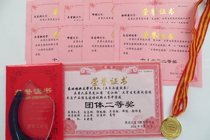 2014年6月19日至21日,由黑龙江省工程图学学会主办、哈尔滨工业大学承办的第六届黑龙江省“龙江杯”大学生先进制图技术与技能大赛隆重举行。来自哈尔滨工业大学、东北林业大学、哈尔滨工程大学、哈尔滨理工大学、东北农业大学等十几所省内高校参加了本届大赛。由土木工程学院5名同学组成的土木与建筑代表队荣获团体二等奖及9项个人单项奖,为我校争得了荣誉。