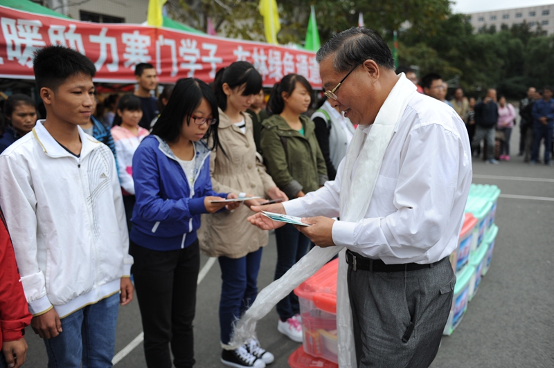 杨校长首先代表学校欢迎各位新同学的到来,感谢大家在全国2400多所高校中选择了东北林业大学。预报到显示,今年我校有552名家庭经济困难学生需要通过绿色通道入学。其中有一大部分是来自林区、农村等经济条件困难地区的学生。杨校长深情地说,现在有健全的国家资助政策体系,学校及社会各界也拿出资金对家庭经济困难学生进行资助,很多东林校友也为母校捐资助学。相信不论家庭经济状况如何,只要来到东林这个新家,学校就不会让任何一名学生因为家庭经济困难而掉队。