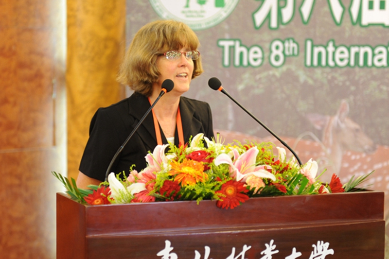 国际鹿类生物学科学委员会主席乔安娜-史密斯-弗吕克博士(Dr. JoAnne Smith-Flueck)讲话