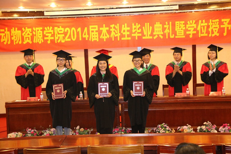 毕业典礼暨学位授予仪式在庄严的国歌声中拉开帷幕。首先,郑冬副院长宣读了学士学位授予决定。随后,党委书记肖向红宣读了校优秀毕业生名单,并由各位领导为获奖学生颁奖。学生代表李珺代表所有毕业生在大会上发言。接下来,张伟院长发表了精彩的毕业致辞。张院长与同学们分享了三个词:评价、希望和祝愿,他希望同学们能用服务基层的热血精神、吃苦耐劳的忘我精神、推动发展的贡献精神在新的岗位不断奋斗。马建章院士代表全体教师为毕业生致辞,马院士结合国际和国内生态环保、野生动物保护事业发展的现状和前景为毕业生提出了三点期望,并嘱咐毕业生们不忘母校教诲,常回家看看。两位良师的谆谆教导让同学们受益匪浅,听众席上的掌声经久不息。