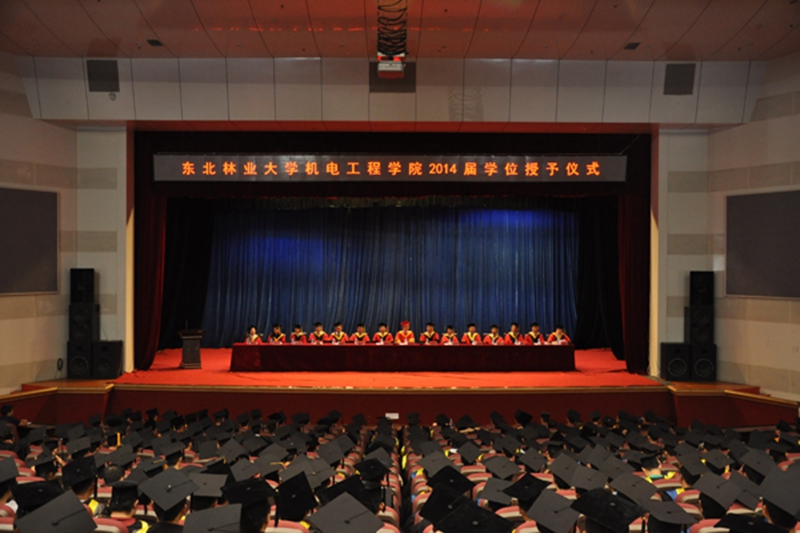 机电工程学院党委书记王维宏同志和副院长郭艳玲教授先后宣读了2014届“东北林业大学优秀毕业生”和“机电工程学院突出贡献奖”获奖名单,主席台就坐的各位领导向获奖学生颁发了荣誉证书。