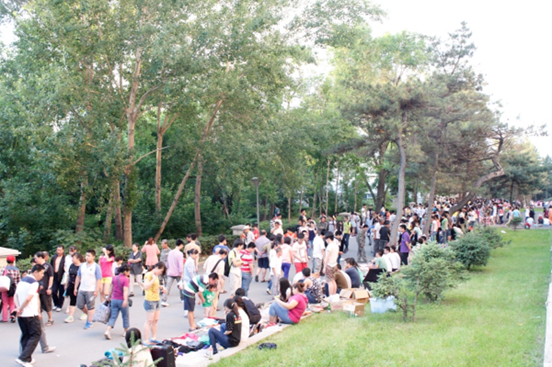 毕业生跳蚤市场,在同学口中也被叫做“大四街”,由党委学工部和保卫处共同为毕业生设立,在毕业生当中拥有较高的人气。在这里,每天都会有毕业生早早地来“抢占”有利地形,临近市场开放时间,不少毕业生就会陆陆续续拉着箱子、提着大包小包的“宝贝”来到提前占好的“领地”,摆起地摊,热情地向学弟学妹们兜售物品。值得一提的是,在市场中毕业生大多是以寝室为经营团队,集中处理寝室、个人的闲置物品,在临近毕业之时体现了浓浓的同窗之情和挚友之意。毕业生们出售的商品五花八门、一应俱全,学习资料和生活用品,种类繁多、无所不有。购买者绝大多数为在校学生,目的是在“大四街”购买一些学习方面的书籍,同时也能跟毕业生进行交流,就考研技巧、就业形势等方面向毕业生咨询,在彼此的温馨话语中体现出爱心的传递与力量的传承。土木工程学院毕业生关晓璐说:“四年的时光积累下了很多书籍和用品,即将毕业,有些东西既然带不走还不如留给学弟学妹们,虽然是卖,但是基本上都是半卖半送的,赚钱不是目的,体会才是真谛。”信息与计算机工程学院毕业生侯翰琛同学说:“毕业将至,再过几天自己就要走上工作岗位,也将告别自己的学生生涯,我希望我的青春和大学的美好记忆也像我的这些书籍一样,永远留在母校。”夜幕降临,华灯初上,毕业生们开始整理收拾自己的物品,准备结束一天的经营,同时对摊点周边环境进行打扫,热闹的校园此时归于宁静。静谧的校园环境仿佛从未曾经历过白天的喧嚣,毕业生们带走的是垃圾和杂物,传递的是精神和力量。