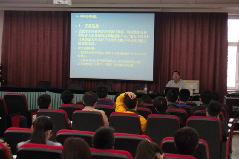 5月14日至6月5日,学生资助管理中心为全校15个学院精心组织了5场还款理财教育讲座,郑克骞老师结合多年工作经验,以贷款理财知识为重点,从利率变化、提前还款、网上银行转账、异地手续费收取等贷款毕业生最为关注的问题出发,帮助学生实现按期还款、经济还款。同时,讲座还通过一个个典型生动的诚信案例,讲述失信对个人再次贷款、信用卡申请以及个人成长发展等方面的影响,教会学生们要保持良好的个人信用记录。贴近学生实际的讲座,使贷款毕业生对还款知识有了更为普遍的了解,受到了贷款毕业学生的一致好评。