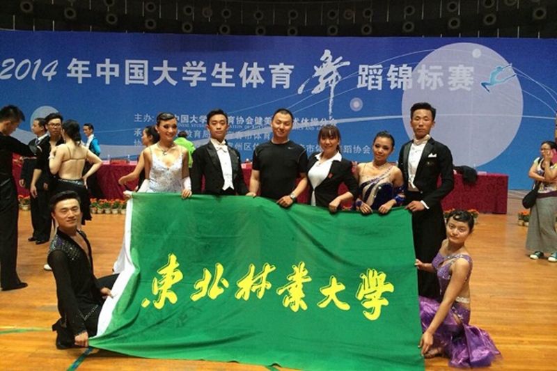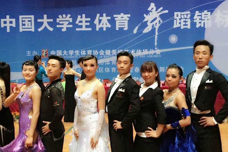 2014年5月27日至6月1日中国大学生体育舞蹈锦标赛在江西宜春落下帷幕。我校派出了朱超(土木工程学院)、张迪(经济管理学院)、管峰(交通学院)、龚卓(经济管理学院)、黄浩(经济管理学院)、马文慧(材料学院)六名同学参加比赛。在曹春燕、付雷老师的率领下,经过两天的激烈角逐,我校代表队最终获得了维也纳团体舞第一名;标准舞A组第一名、标准舞B组第二名、标准舞C组第三名:拉丁舞B组第三名、拉丁舞C组第五名、拉丁舞A组第六名的好成绩,充分展现出我校大学生的青春风采!